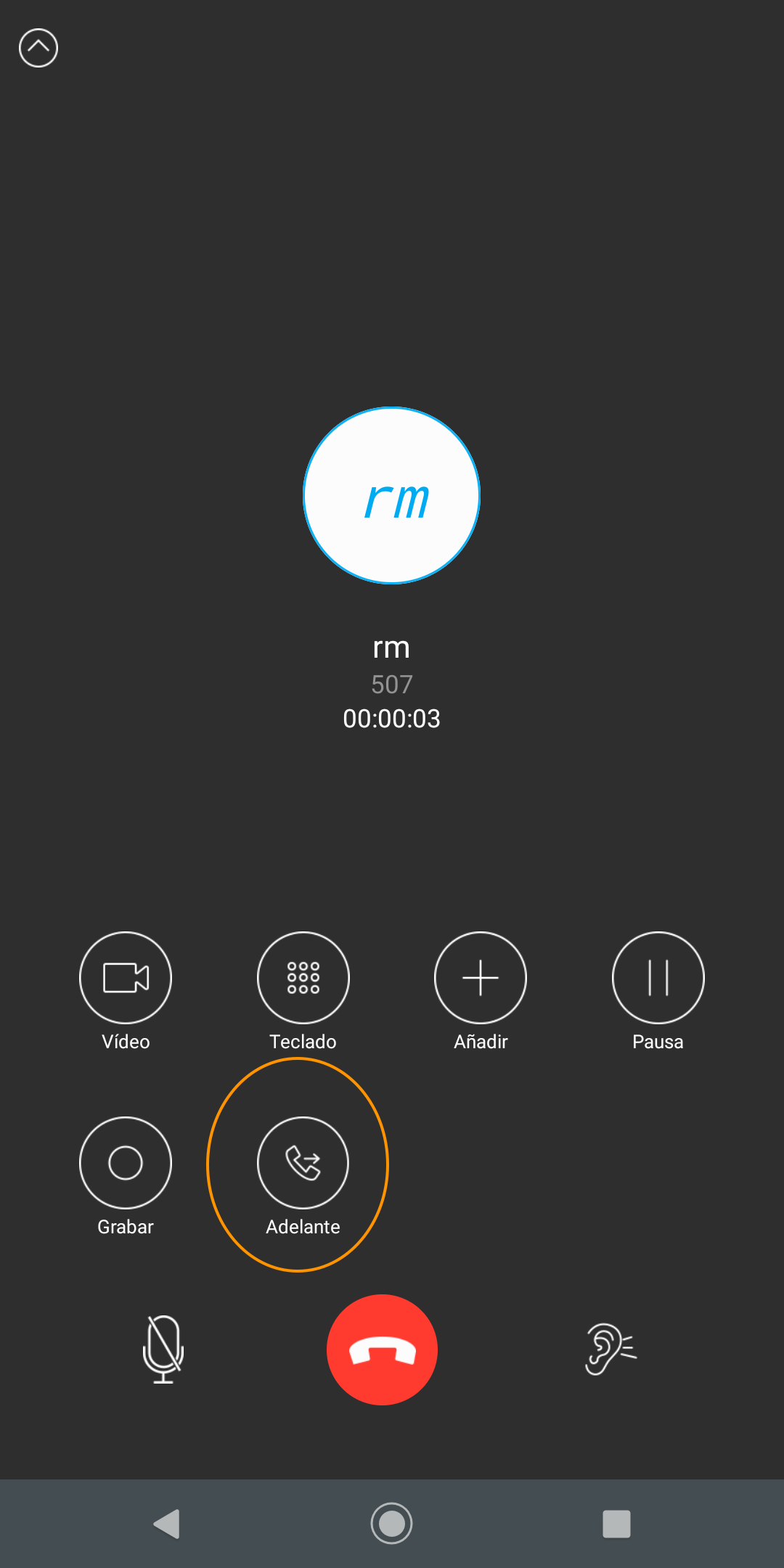 - Con la llamada activa ya sea entrante o saliente apretar el siguiente boton: